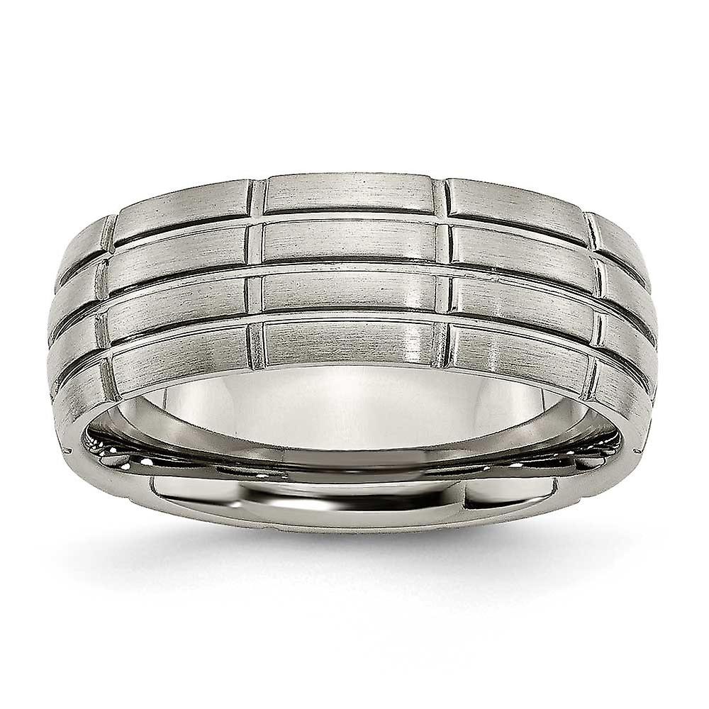 Titanium Brushed Polished Grooved 8mm Satin Band Ring Ring for Women and Men - Ring Size: 6 to 14
