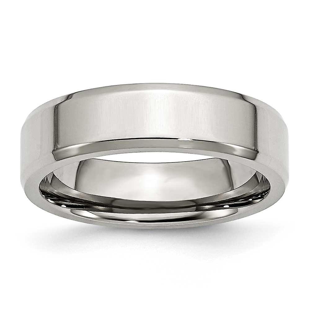 Stainless Steel Beveled Edge 6mm Polished Band Ring - In Solid Stainless Steel - Product Attributes: - Engravable - - Ring Size Options: 10 10.5 11 11.5 12 12.5 13 6 6.5 7 7.5 8 8.5 9 9.5
