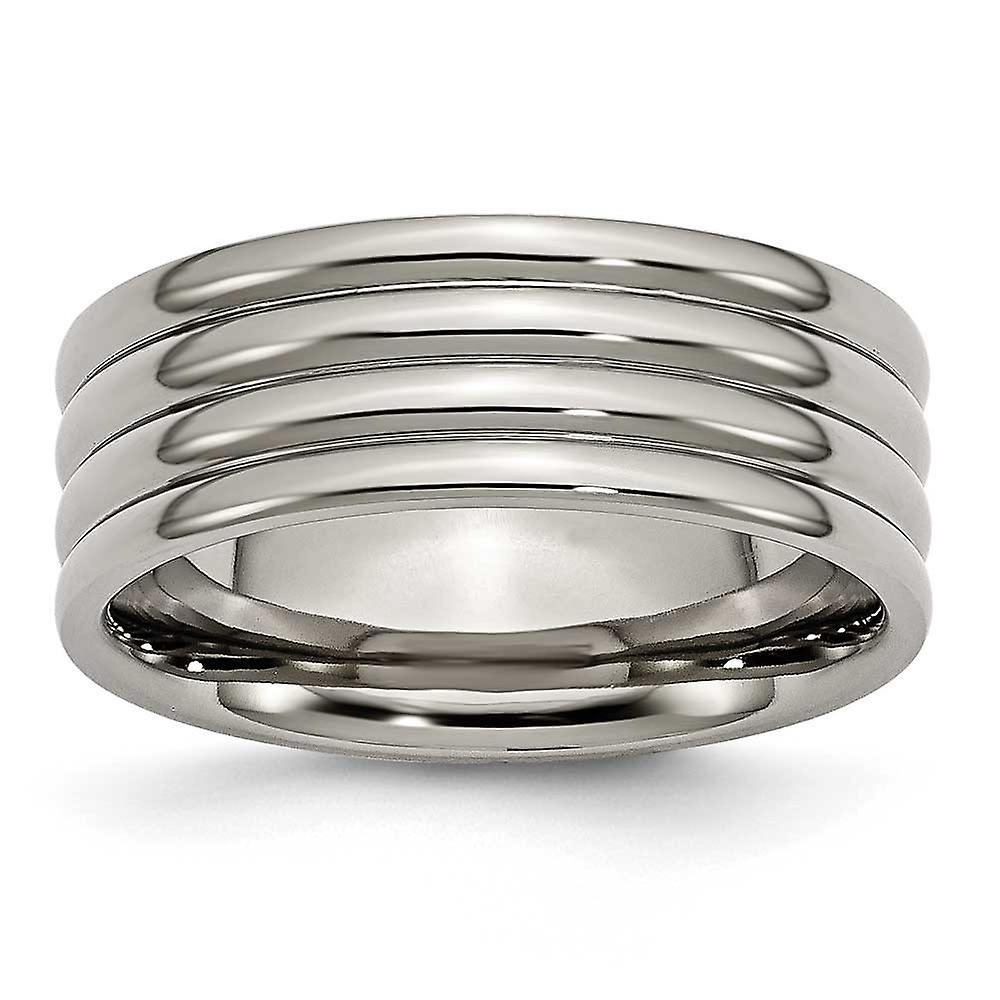 Titanium Grooved 8mm Polished Band Ring Ring for Women and Men - Ring Size: 6 to 13