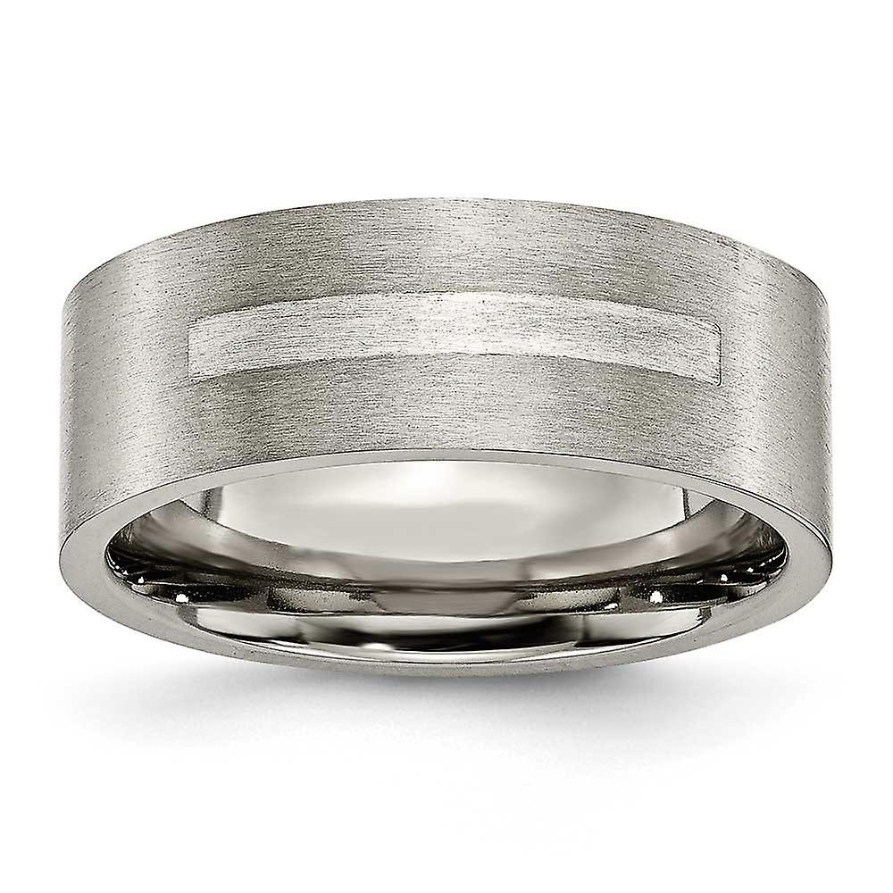 Titanium Flat 8mm 925 Sterling Silver Flat Band Inlay Brushed Band Ring Ring for Women and Men - Ring Size: 7 to 13