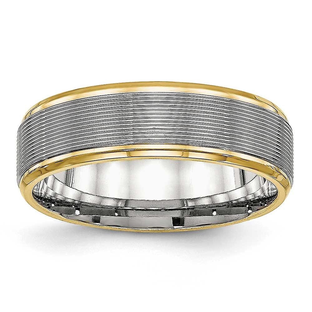 6mm Stainless Steel Polished Yellow Ip Grooved Ring Ring for Women - Ring Size: 6 to 13