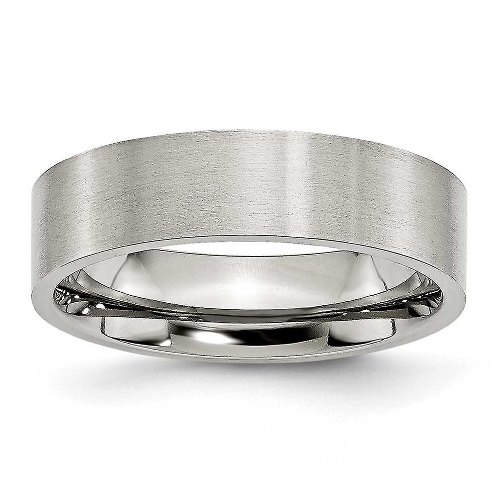 Stainless Steel Flat 6mm Brushed Band Ring - In Solid Stainless Steel - Product Attributes: - Engravable - Flat Band - - Ring Size Options: 10 10.5 11 11.5 12 12.5 13 6 6.5 7 7.5 8 8.5 9 9.5