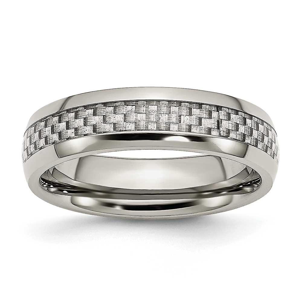 Stainless Steel and Grey Carbon Fiber 6mm Polished Band Ring Ring for Women and Men - Ring Size: 6 to 13