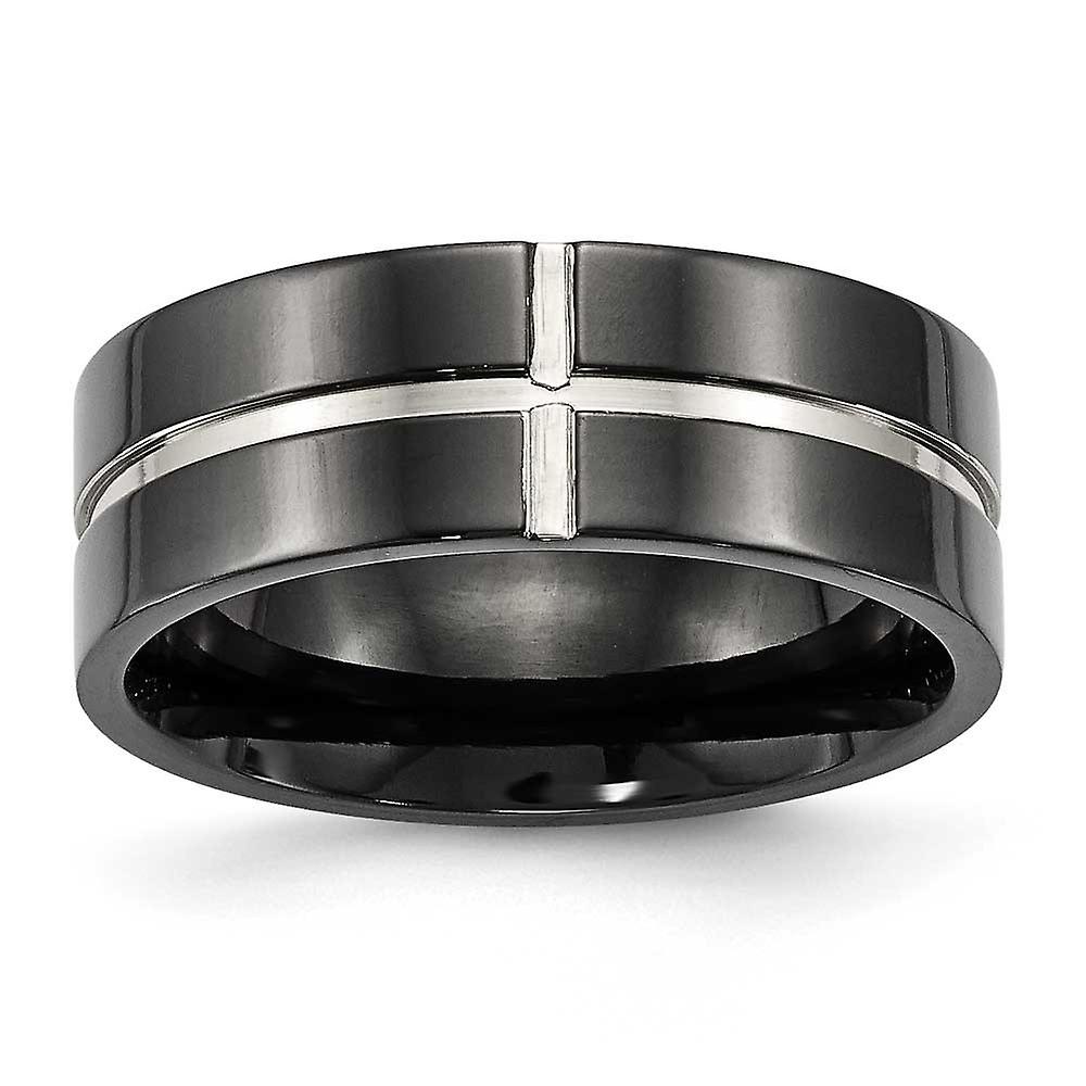 8mm Titanium Polished Black Ip Grooved Comfort Back Ring Ring for Women - Ring Size: 7 to 13