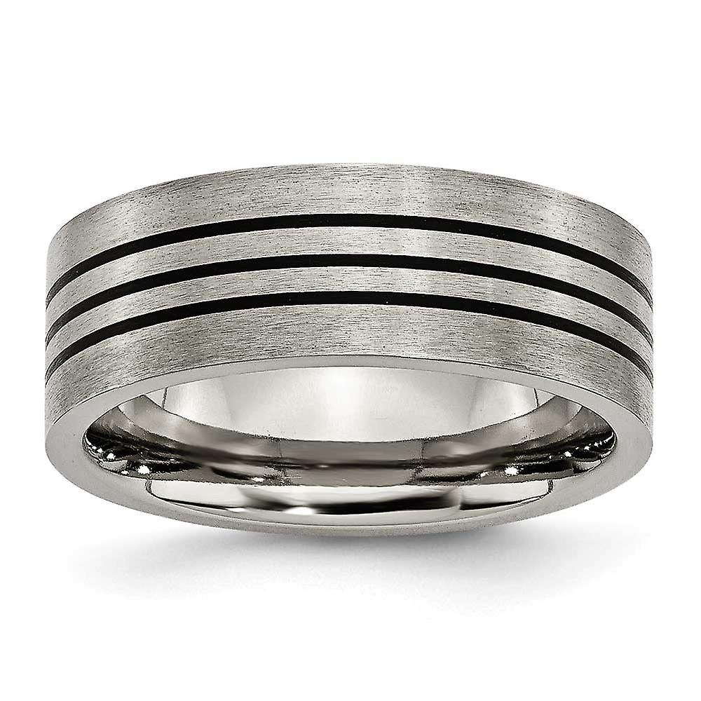 Titanium Enameled Flat 8mm Satin and Polished Band Ring - In Titanium - Product Attributes: - Engravable - Flat Band - Polished and satin - - Ring Size Options: 10 10.5 11 11.5 12 12.5 13 7 7.5 8 8.5 9 9.5
