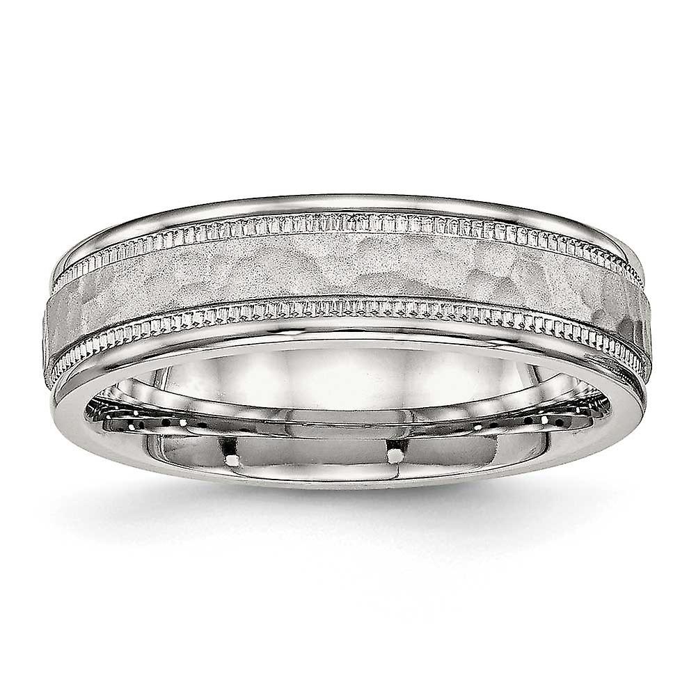 Stainless Steel Polished Hammered and Grooved 6.00mm Band Ring Ring for Women and Men - Ring Size: 6 to 13