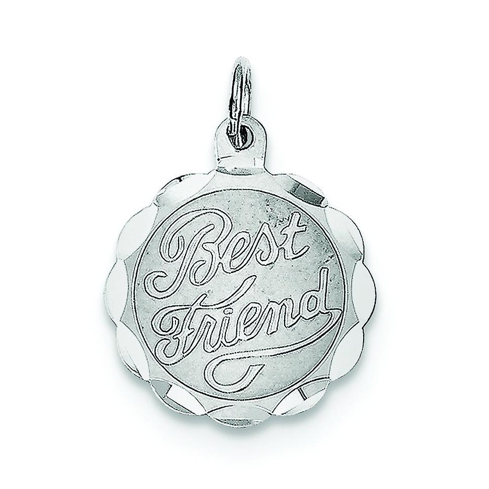 925 Sterling Silver Solid Faceted Polished back Polished and satin Best Friend Disc Charm 18x15mm Wide Pendant Necklace