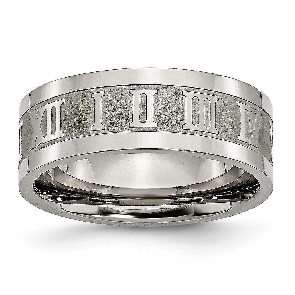 Titanium Polished and satin Roman Numerals 8mm Satin and Polished Band Ring Ring for Women and Men - Ring Size: 7 to 13