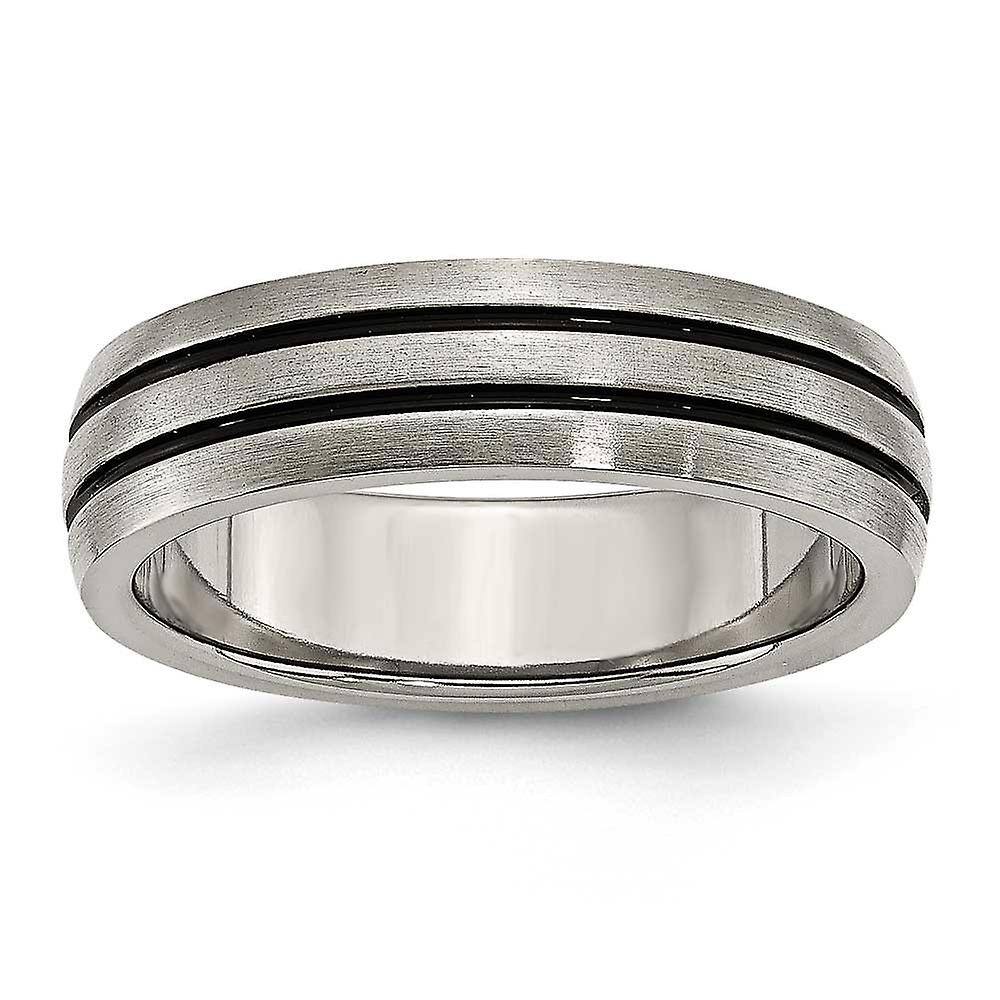 Titanium Enameled Grooved 6mm Satin Band Ring Ring for Women and Men - Ring Size: 6 to 13