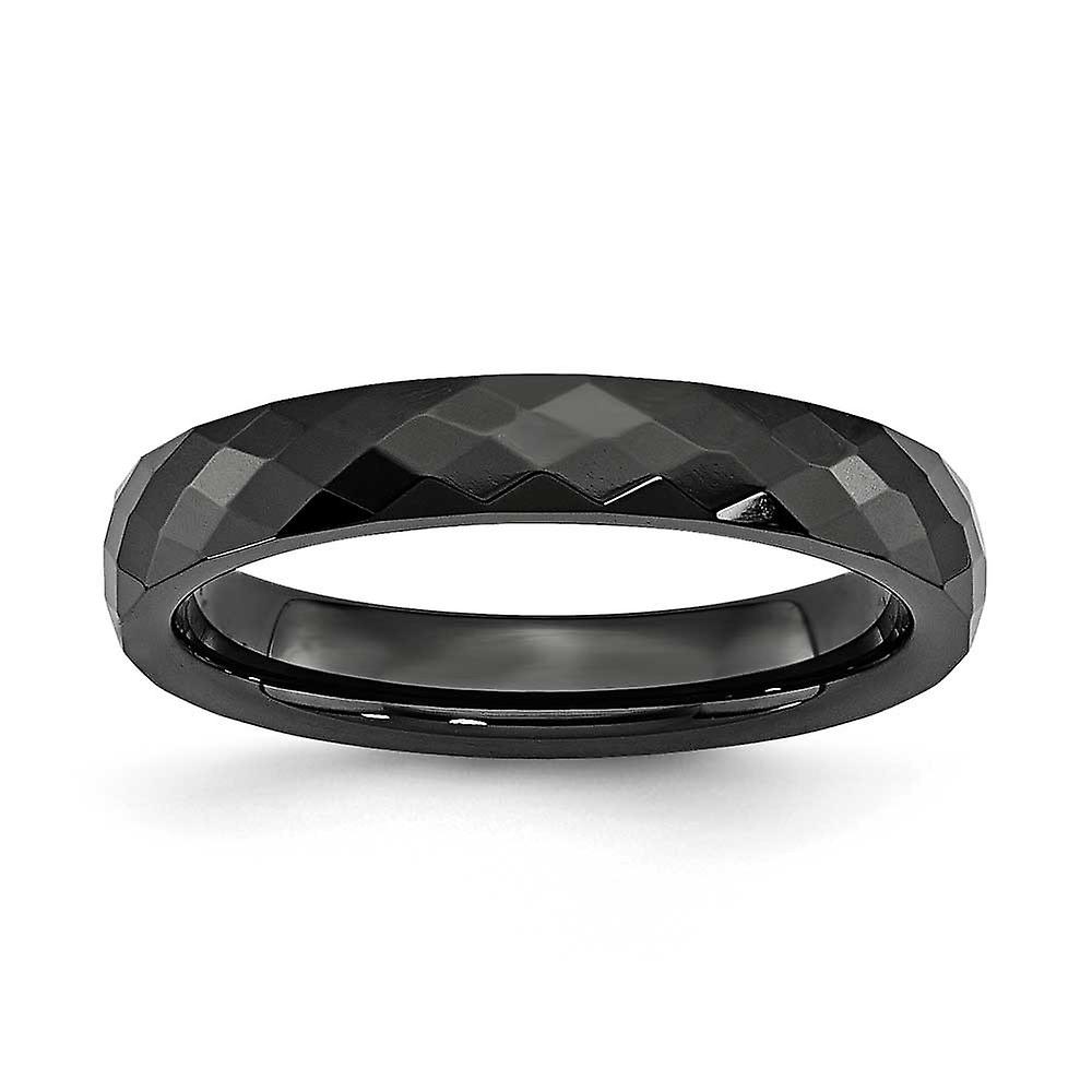 Ceramic Black 4mm Faceted Polished Band Ring Ring for Women and Men - Ring Size: 6 to 12