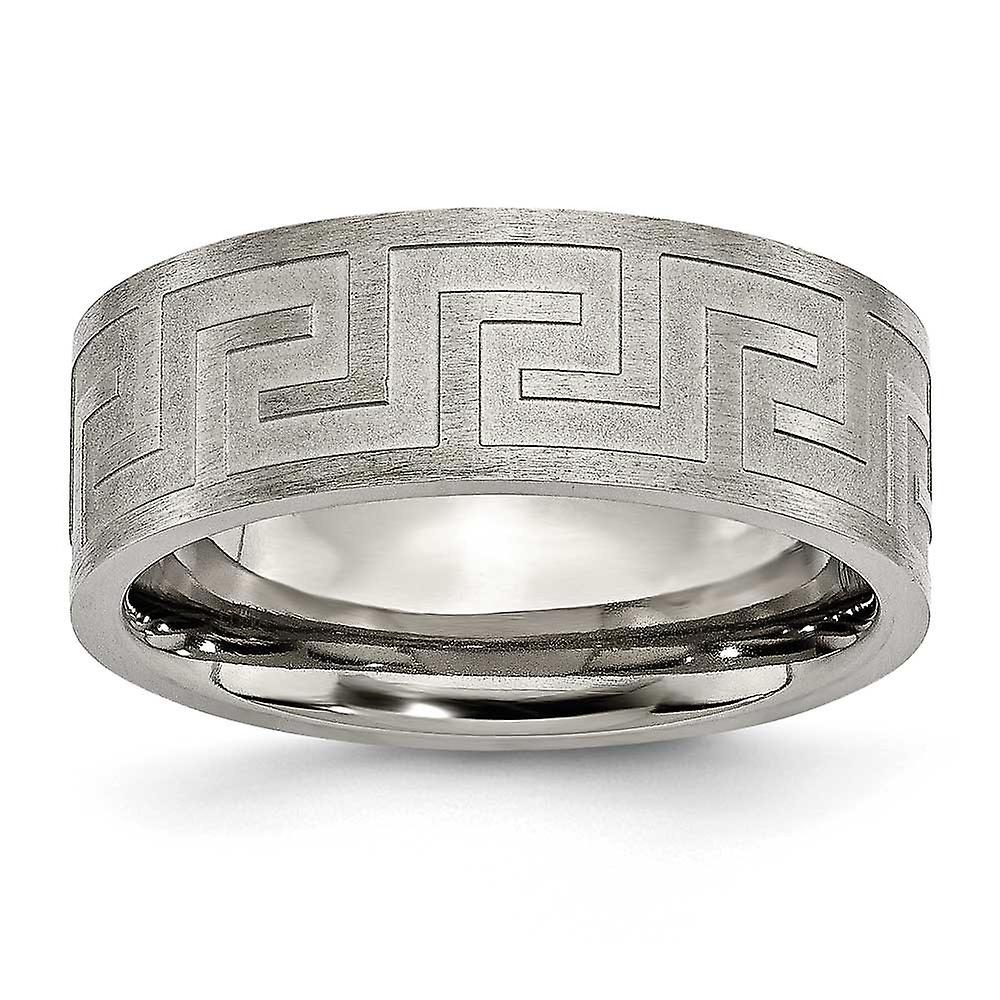 Titanium Polished and satin Greek Key 8mm Satin and Polished Band Ring Ring for Women and Men - Ring Size: 7 to 13
