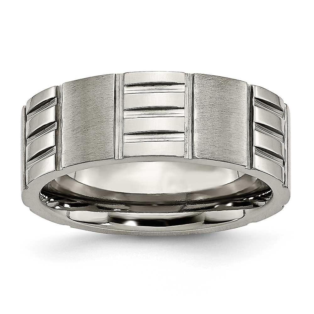Titanium Polished and satin Notched 8mm Satin and Polished Band Ring Ring for Women and Men - Ring Size: 7 to 13