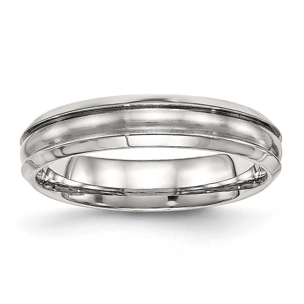 Stainless Steel Brushed and Polished Ridged 5.00mm Band Ring Ring for Women and Men - Ring Size: 6 to 13