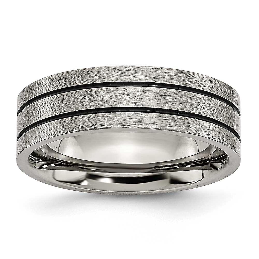 Titanium Flat Band Black Enamel Flat Grooved 7mm Brushed Band Ring for Women and Men - Ring Size: 4 to 20