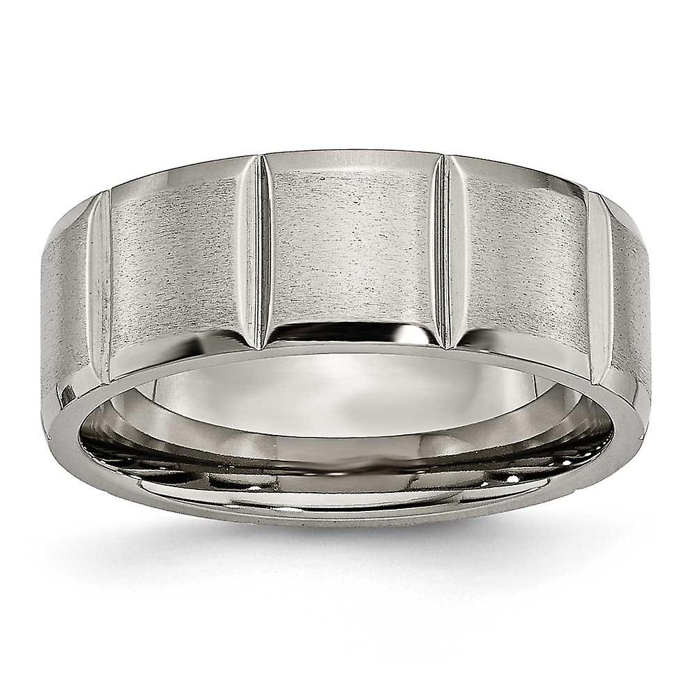 Titanium Polished and satin Notched 8mm Grooved Satin Band Ring Ring for Women and Men - Ring Size: 7 to 13