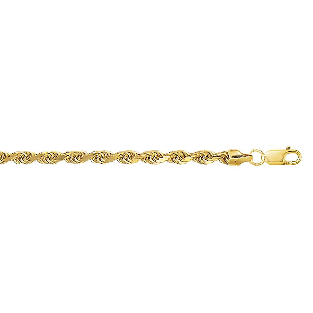 10k Yellow Gold 4.0mm Sparkle-Cut Hollow Sparkle Rope Chain Bracelet With Lobster Clasp 8 Inch Link Bracelet for Women a