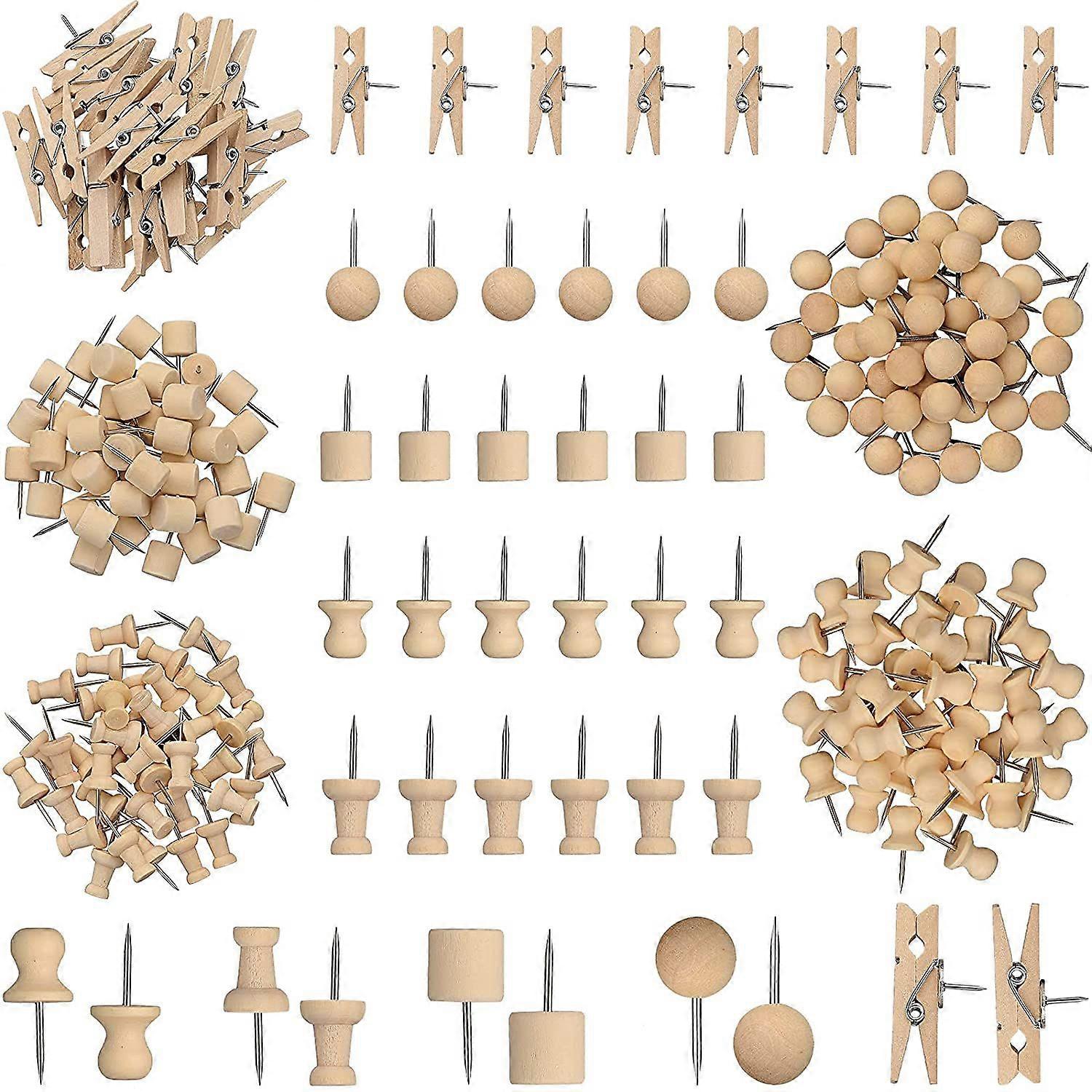 230 Pcs Wooden Push Pins with Round Head & Wooden Clips fast