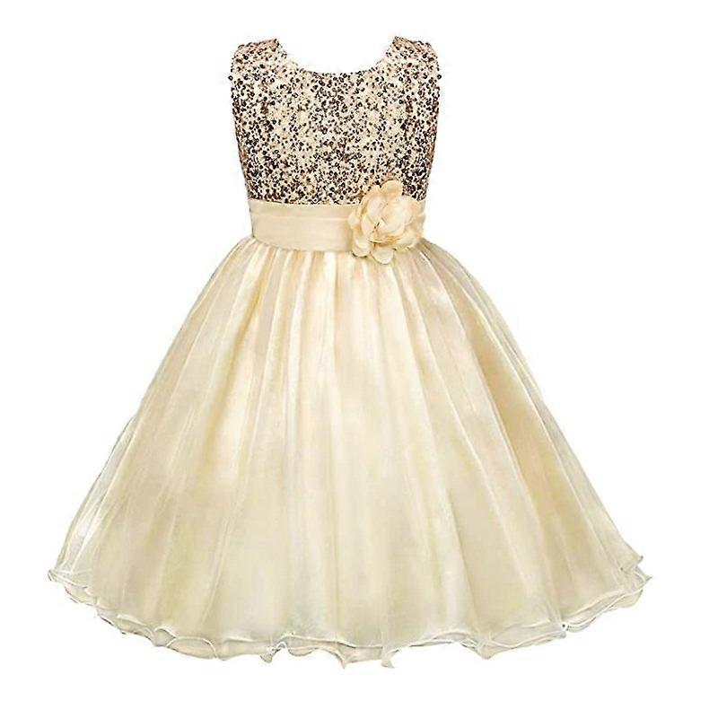 XIANRENGE Girls Princess Dress Sequin Tulle Flower Pageant Birthday Party Wedding Bridesmaid Girl Dresses, Gold