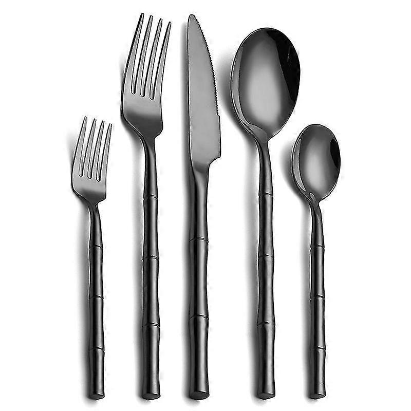 Stainless steel cutlery, creative cylindrical bamboo handle, 304 thick cutlery (set of 5)