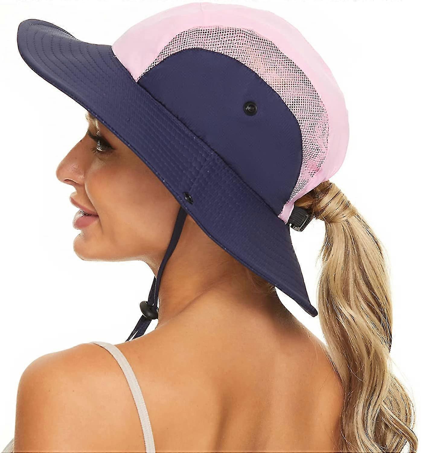 Ladies Ponytail Sun Hat Outdoor Summer Sun Hat UV Protection Wide Brim Foldable Fishing Hat