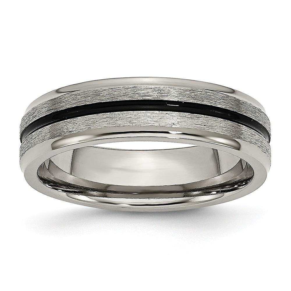 Titanium Polished and satin Black Accent 6mm-Satin-Polished Band Ring-Ring for Women and Men - Ring Size: 4 to 20
