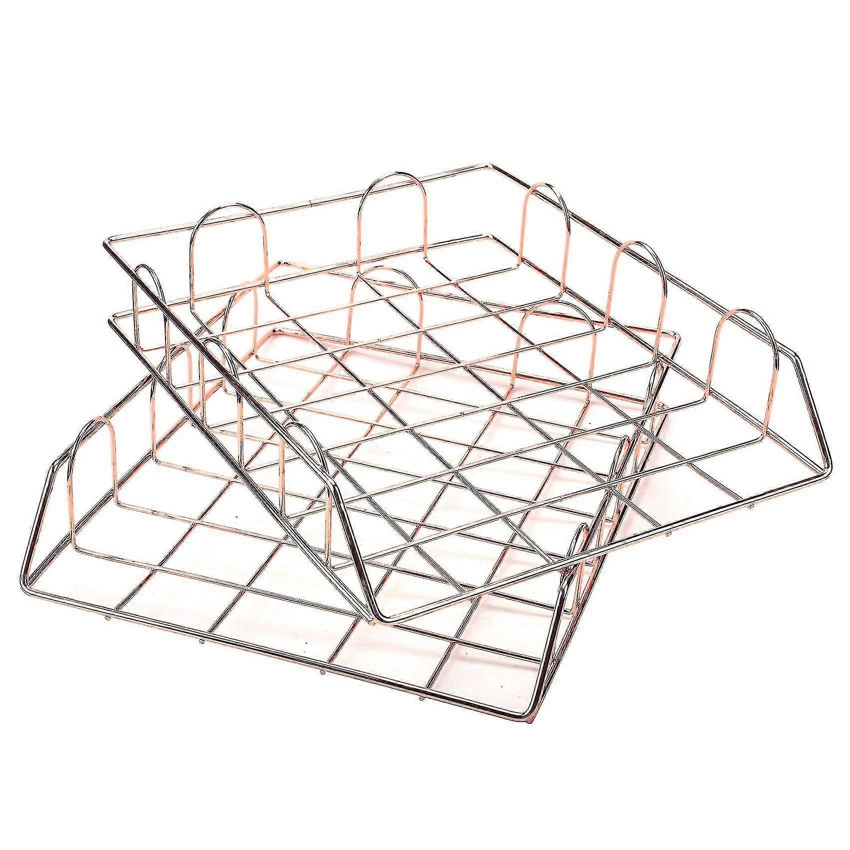 1 Set Of 2 Metal Stackable File Document Letter Tray Izer