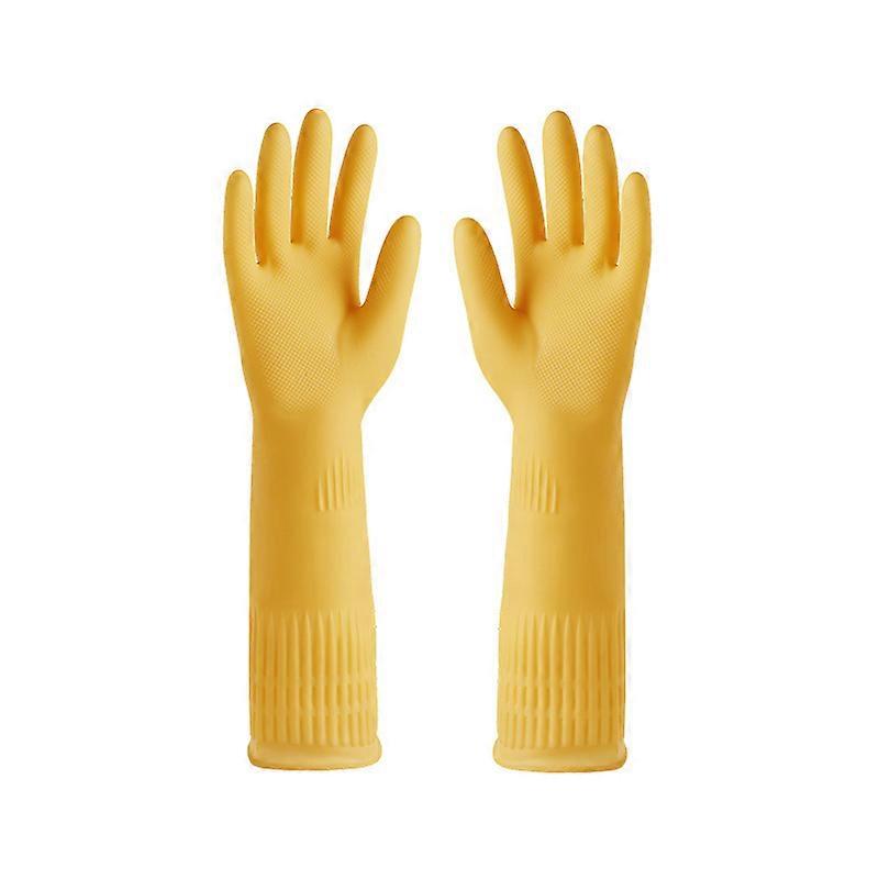 1 Pair Yellow Rubber Gloves - Long Rubber Cleaning Dishwashing Gloves (Medium 38cm)