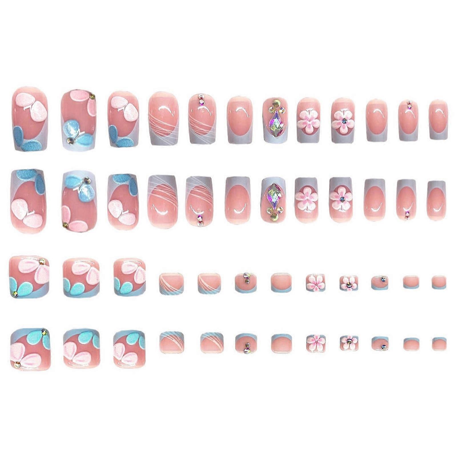 Features: Floral Elegance: The pink finger toe press-on nails feature a stunning floral design with sparkling flowers, adding a touch of glamour to any outfit for women who love style. Easy Application: These detachable false nails come ready-to-wear, allowing for a quick and effortless manicure that transforms your look in minutes without the need for salon visits. Reusable & Removable: Our shimmering artificial nails are designed to be reusable and easily removable, ensuring you can switch up your style without damaging your natural nails. Versatile Glamour: This 2-pack set includes a variety of pastel flower sparkle designs, perfect for any occasion, whether it's a casual day out or a special event that calls for extra flair. Non-Damaging Pack: Enjoy a dazzling manicure with our glittery floral design twin set that's gentle on your nails, ensuring a beautiful look without any harm to your natural nail health. Specifications: Material: Resin Quantity: 48pcs Suitable for: Finger, toe Include: 24pcs * Fake Finger Nails 24pcs * Fake T oe Nails 1 * Nail Polish Stick