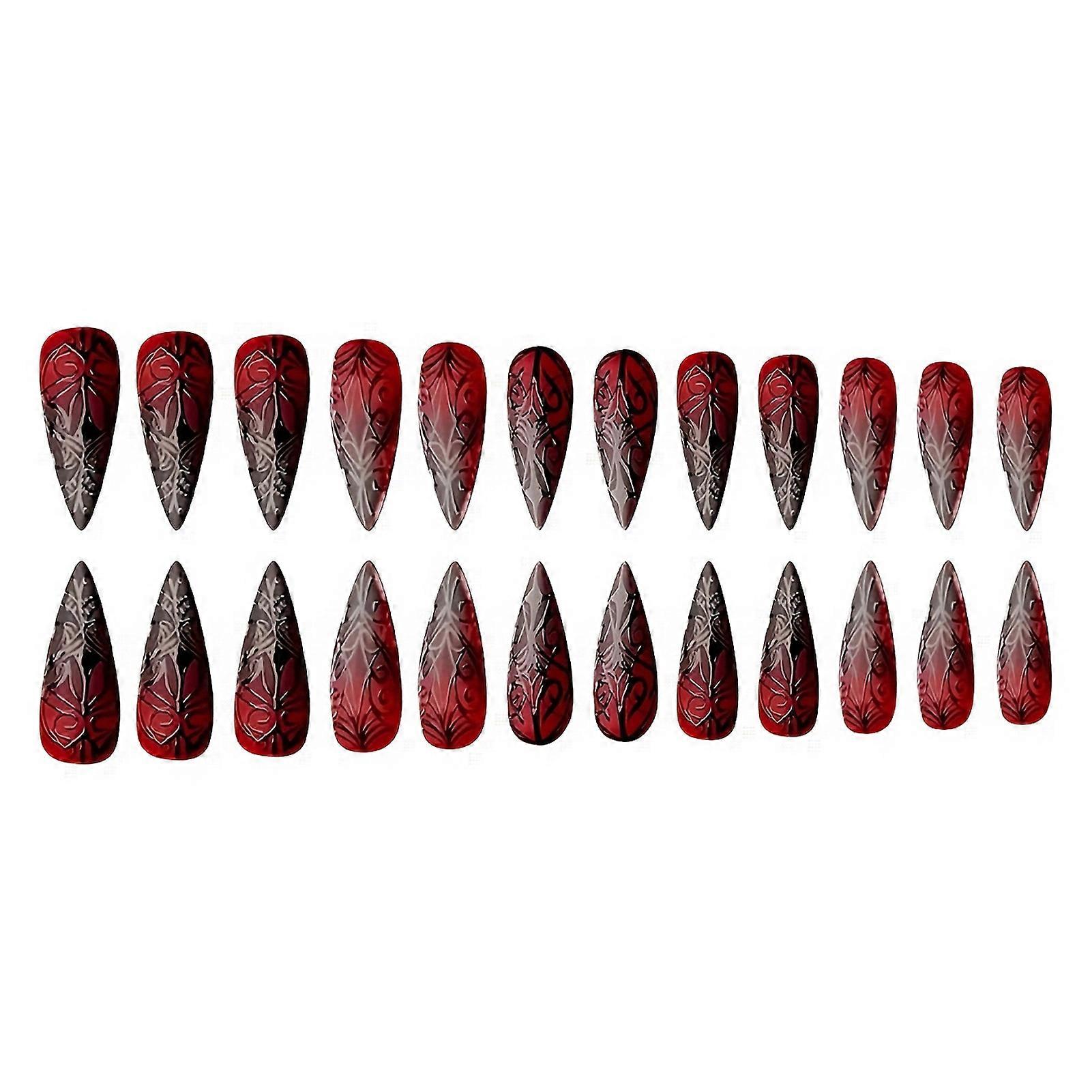 Features: Elegant Design: Our wine red artificial nails feature stunning branches printed on a dark red base, adding a touch of sophistication and style to any outfit for both daily wear and special occasions. Lightweight & Comfortable: These fake nails are designed to be lightweight, ensuring a comfortable fit throughout the day. You'll hardly notice you're wearing them, making them perfect for long-term use. Durable & Long-lasting: Crafted from premium-quality materials, our press-on nails are durable and designed to resist splitting, ensuring they stay intact during your daily activities or parties. Easy Application: Enjoy a hassle-free experience with our simple stick-on design. These natural unbreakable nails can be applied quickly, allowing you to achieve a salon-quality look at home. Versatile Use: Ideal for women seeking nail art decoration, our nails are perfect for everyday wear, parties, and even stage performances, making them a versatile addition to your beauty routine. Specification: Material: Resin Quantity: 24pcs Notes: Please allow slight tolerances in size due to manual measurement, and lighting in photography may result in a difference in color than in real. Include: 1 Set * False nails (24pcs included) 24 PCS * Jelly glue 1 * Nail rub strip