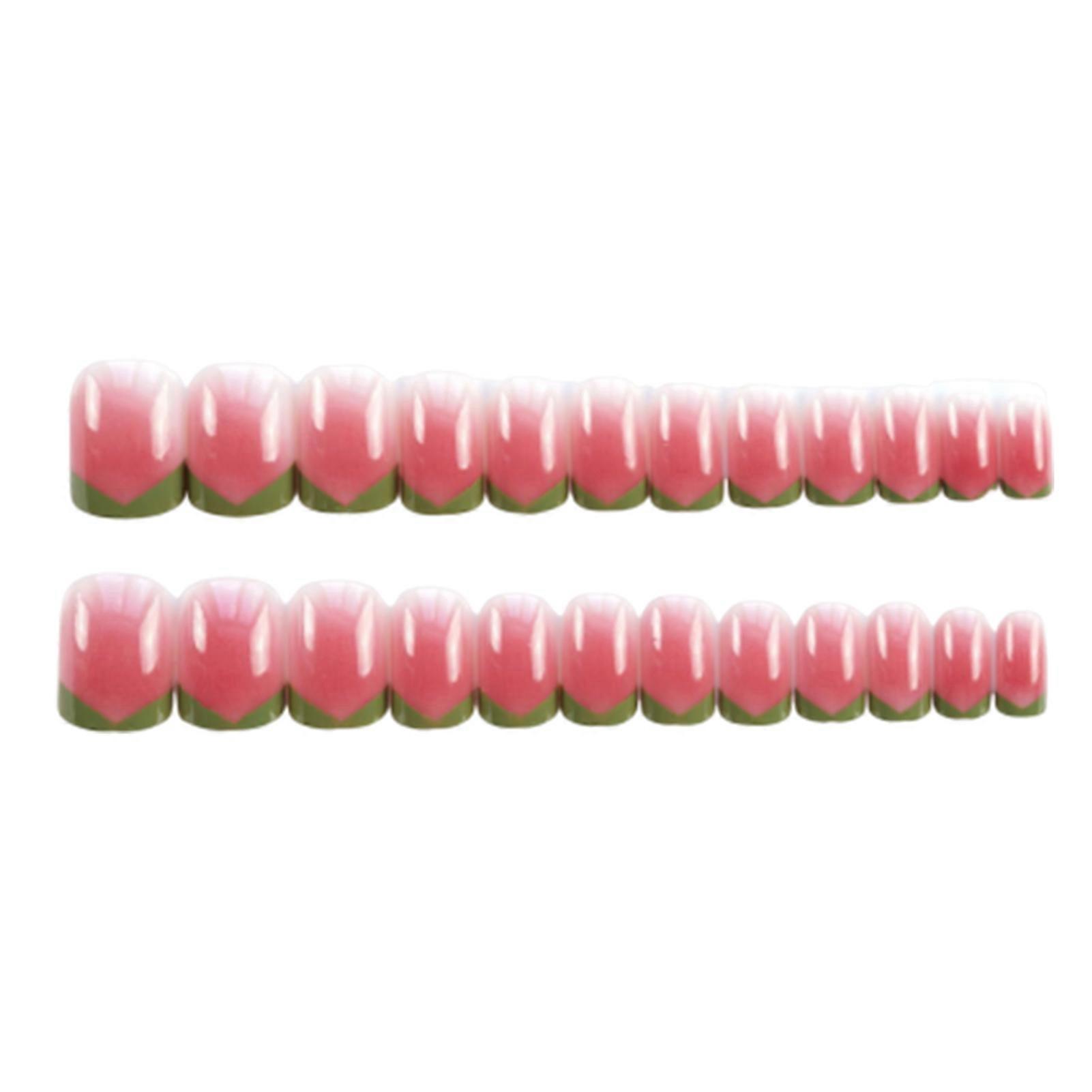 Features: Easy Application: These 24pcs French Press-on Nails are designed for convenient and hassle-free application. Simply press them onto your natural nails for a quick and effortless manicure. Glossy Finish: The glossy false nails provide a high-shine finish, adding a touch of elegance to your overall look. They are perfect for women who want to enhance their style and make a statement. Mid-length Design: With a mid-length French fake nail design, these nails offer a balance between sophistication and practicality. They are suitable for both professional settings and everyday wear. Green Tips Blusher Style: The grape blusher style with green tips resin artificial nails adds a unique and eye-catching element to your manicure. It's a great choice for those who want to stand out and express their individuality. Reusable and Removable: These green square edge artificial nails are not only reusable but also easy to remove. They can be used multiple times, making them a cost-effective option for both salon experts and those new to nail art. Specification: Material: Resin Quantity: 24pcs Gender: Women Notes: 1. Due to the lighting effects and shooting angles, there is a color difference in the product, please understand. 2. Due to manual measurement, there is a tolerance in the product size. Include: 1 Set * False Nails (24pcs included) 24pcs * Jelly Glue 1pc * Nail File