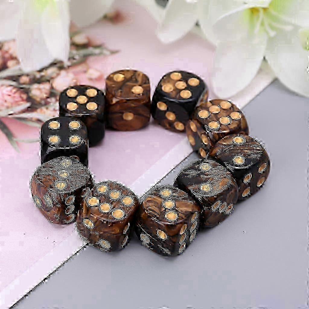 10 Pcs 16mm Resin Dice D6 Black Gold Points Round Edges Ktv Bar Nightclub Entert