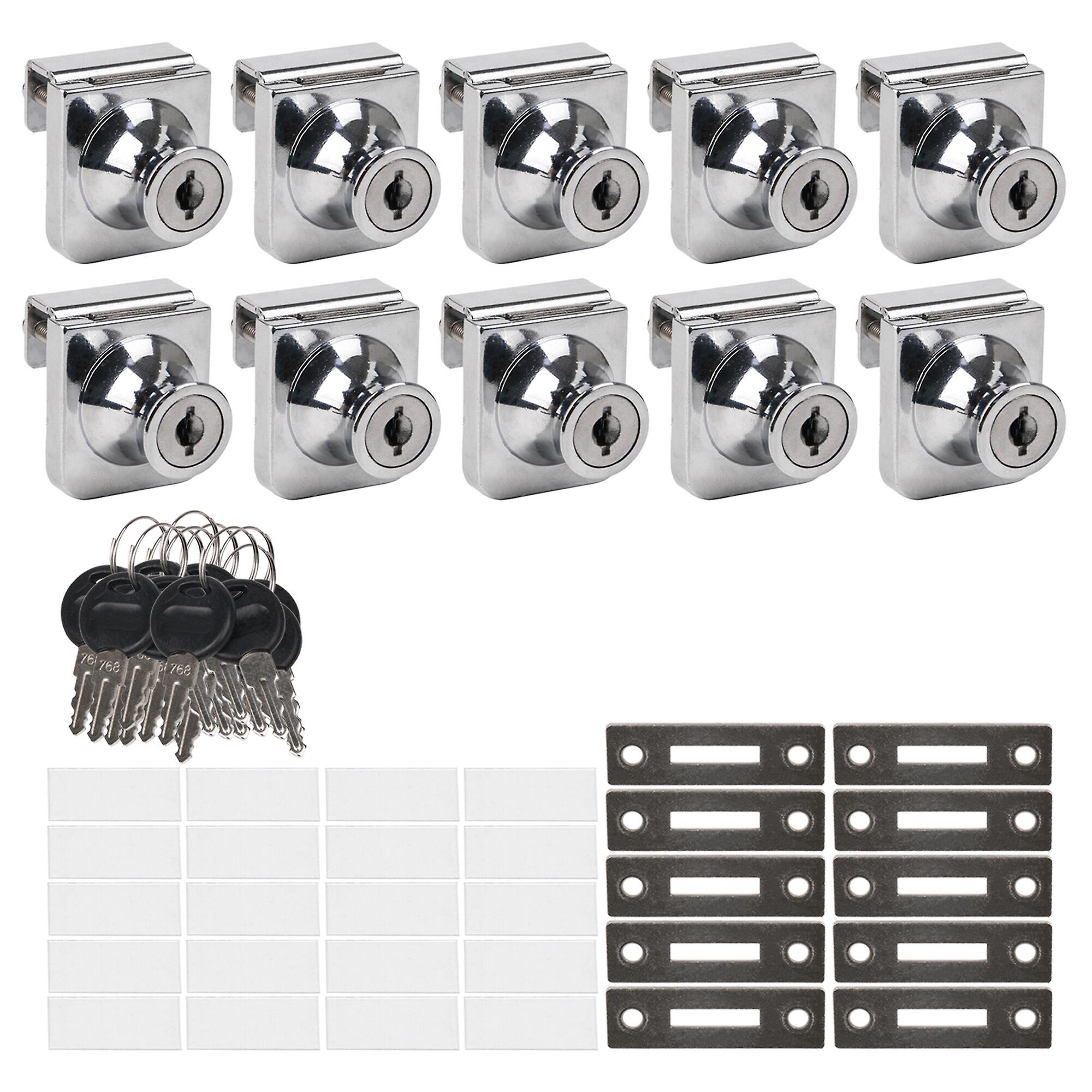 10 x Glass Door Push Lock 1.38Inchx1.18Inch Silver Stainless Steel with 20 Key