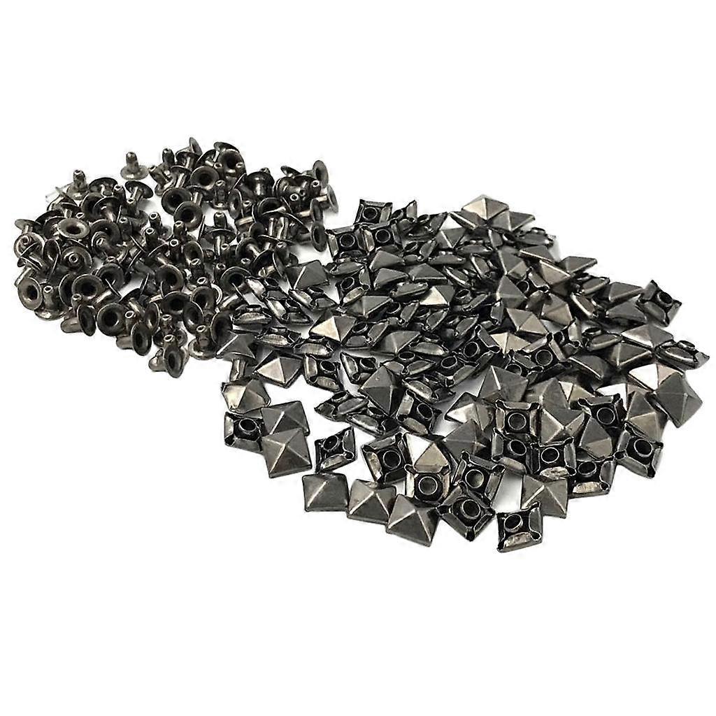 100 Sets Pyramid Square Stud Spikes Rivets DIY Bag Shoes Leather Craft 6mm