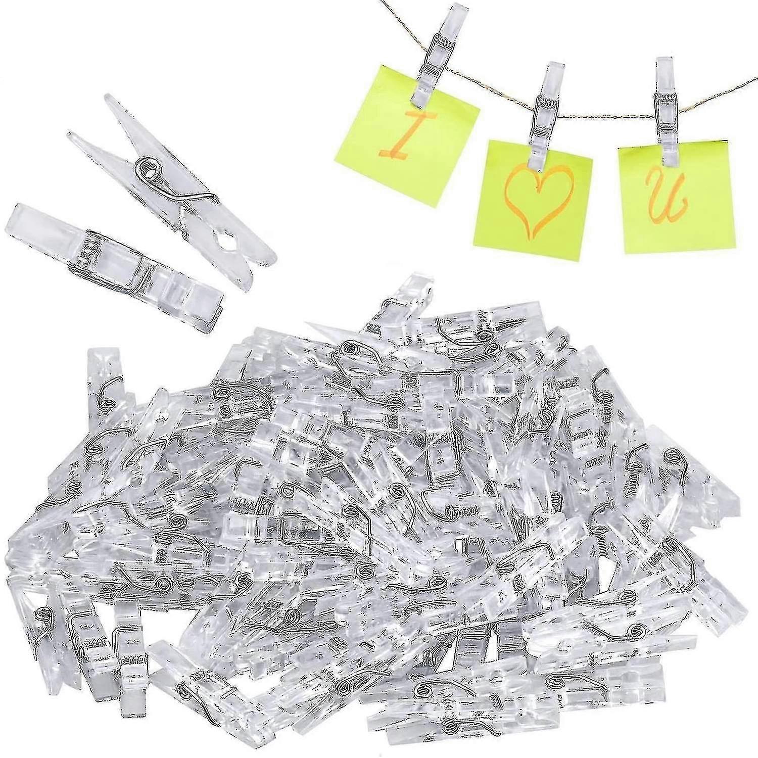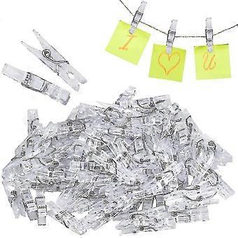 100 Pcs Mini Clear Pegs 34mm Tiny Photo Clips Transparent Plastic Clothes Pegs for Hanging Photos Ca