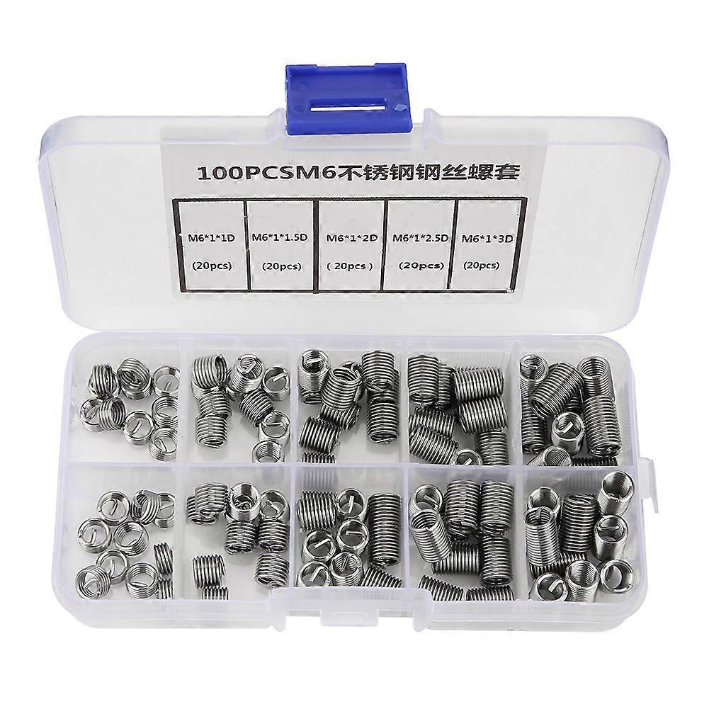 100pcs M6 Stainless Steel Thread Inserts Set, Coiled Wire, Assorted Lengths