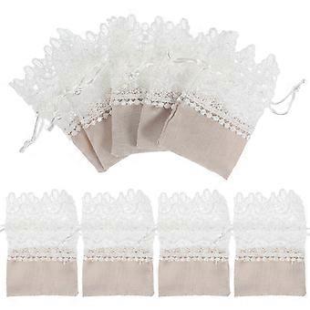 10pcs De Luxe Dentelle Cordon Sac Bijoux Cadeau Pochettes De Rangement Cordon De Serrage Sacs En Tissu De Mariage Bonbons Sacs (Beige)