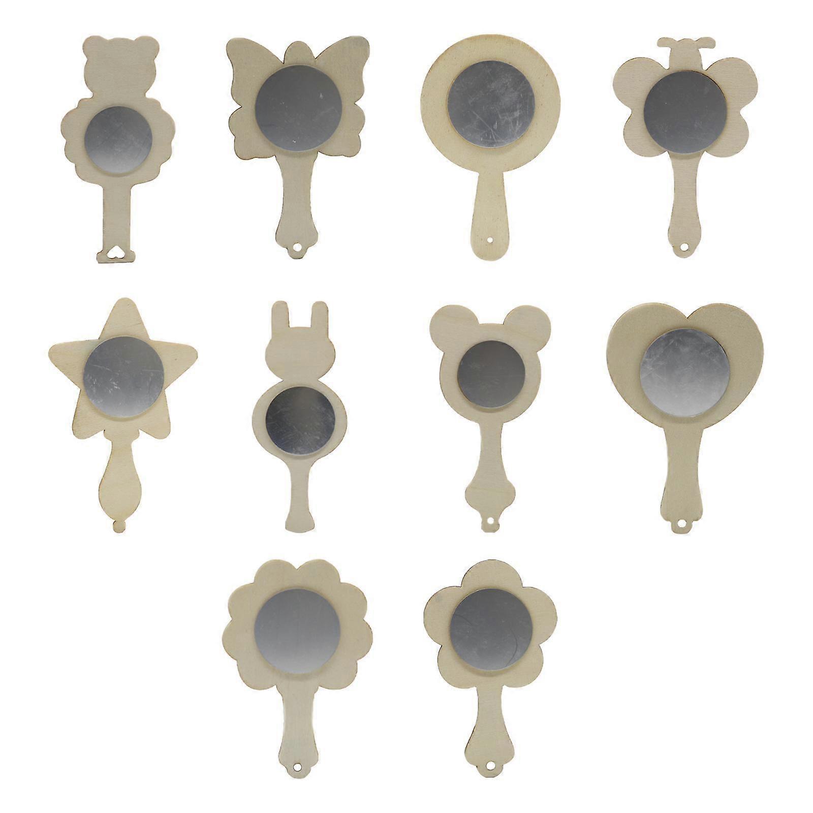 10pcs Unpainted Unfinished Wooden Mirror Handmade Handheld
