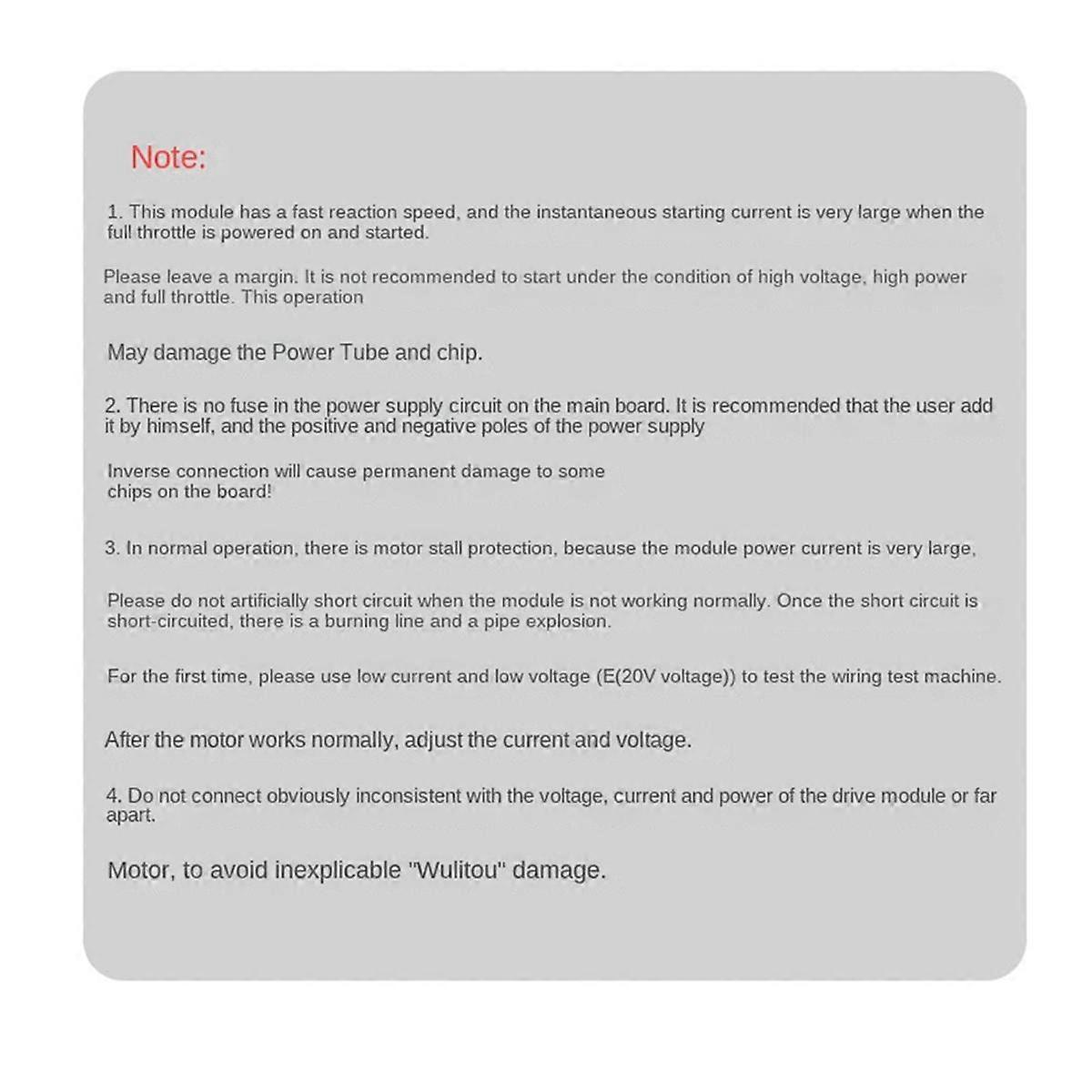 The DC brushless Hall driver board uses the JY01 chip as the core, with the LM339 comparator and the IR2101s gate driver IC, to provide an efficient and stable DC brushless motor drive solution. The driver board supports precise control of the Hall brushless motor. It only needs to connect the Hall signal line and the motor UVW three-phase line to control the motor rotation. Supports SPWM drive mode, speed adjustment through PWM signal, and can control the motor forward and reverse rotation through pins. The driver board has overcurrent and overtemperature protection functions to safe and stable operation of the motor. Input power supply voltage: 12~37V Supports maximum output current 5A Onboard Hall sensor interface, supports Hall brushless motor Motor speed is adjusted by potentiometer Built-in protection circuit, with over-current and over-temperature protection function to safe operation of the motor Support SPWM drive mode Adopt LM339 high-performance comparator to improve signal stability Instructions for use: 1. Power the driver board (DC 12-37V) 2. Connect the potentiometer and turn the potentiometer knob counterclockwise to the lowest gear to prevent the motor from automatically turning on when powered on 3. Connect the brushless motor output line (the three wires of the three-phase brushless motor can be connected in any order, and the direction of rotation of the motor can be changed by changing the connection order of any two wires) 4. Connect the motor's Hall signal lines HA, HB, 5. Slowly rotate the potentiometer knob clockwise and the motor will start to rotate. Different batches may have different appearances, but will not affect the use Colour:Blue Material:PCB Package Contents: 1 x Motor driver board 1 x Pin header1 x Potentiometer Only the above package content, other products are not included. Note: Light reflection and different displays may cause the color of the item in the picture a little different from the real thing. The measurement allowed error is +/- 1-3cm.