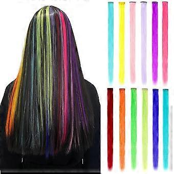 12PCS Colored Hair Extensions Clip in Colorful Hair Extensions 20 Inch Rainbow Hair Extensions for Kids Women's Gifts Red Pink Blue Hair Extensions(12