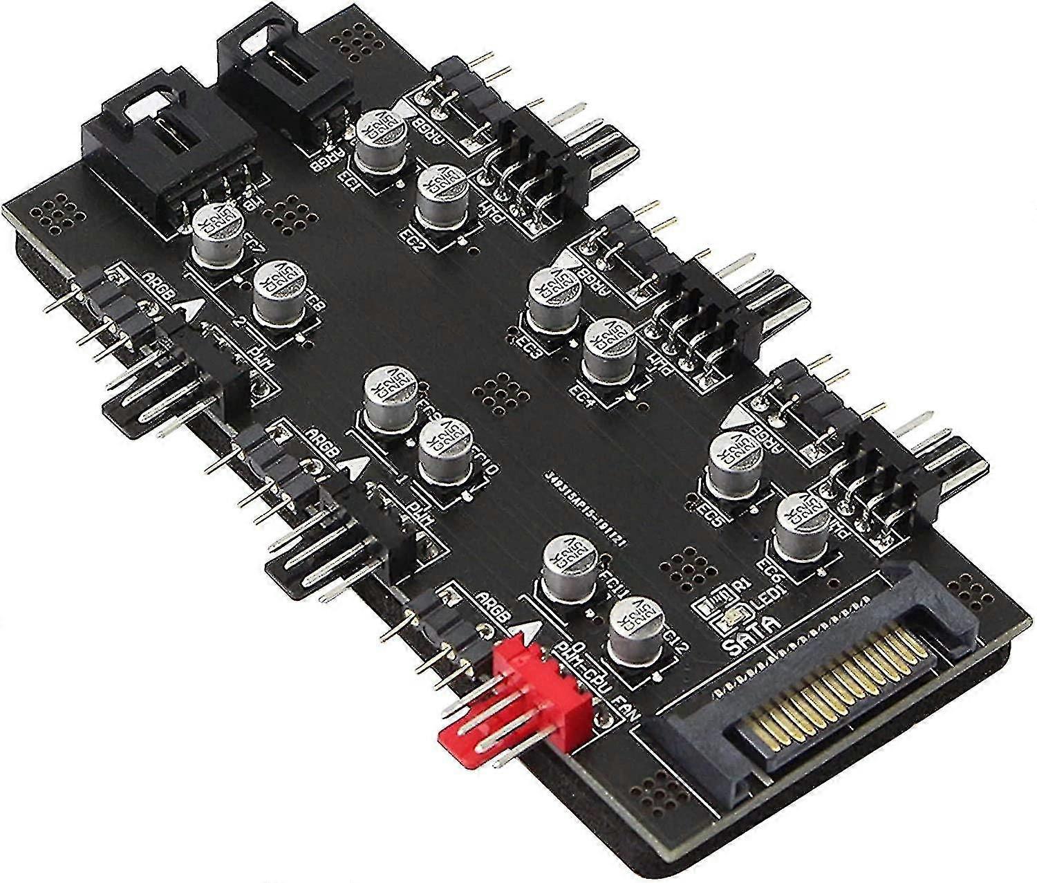 12v 4pin Pwm & 5v 3pin With Ide 4pin Power 2-in-1 Hub 6 Way Sync Cpu Cooling Fan