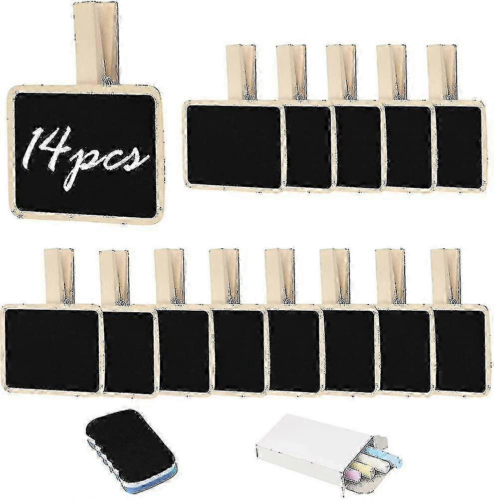 14pcs Mini Blackboard Clips,wooden Memo Chalkboard Message Chalk Board Hr