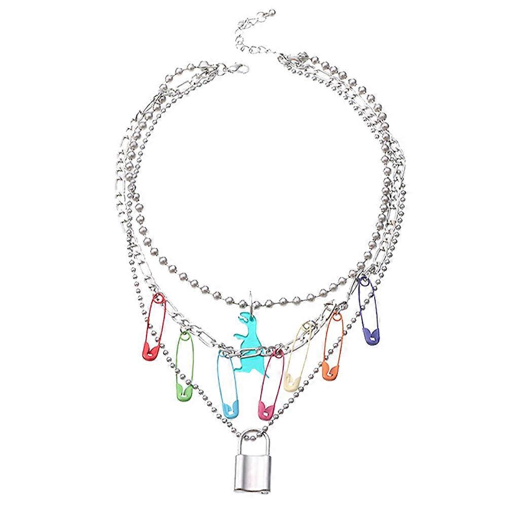 1Pc Fashionable Round Bead Necklace Colored Pin Clavicle Chain Jewelry Decor