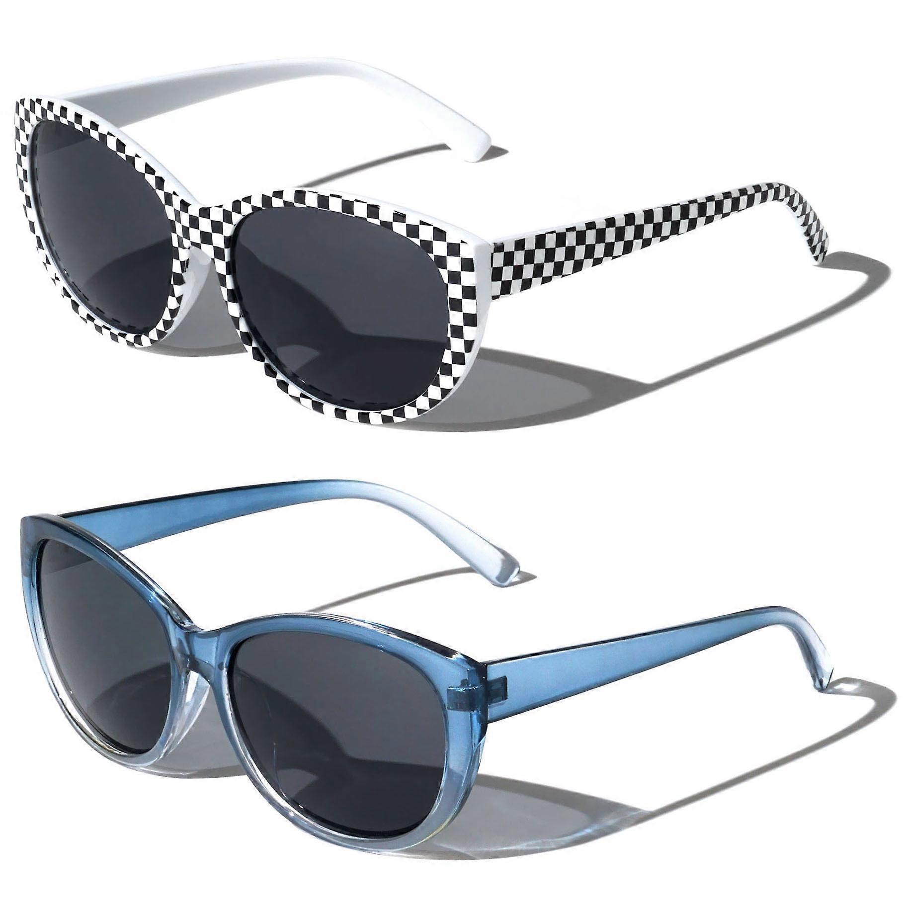 2 Pairs of Womens Fully Magnified Outdoor Reading Sunglasses - Full Tint Readers - Oversized Leopard Jackie O Vintage +3.50