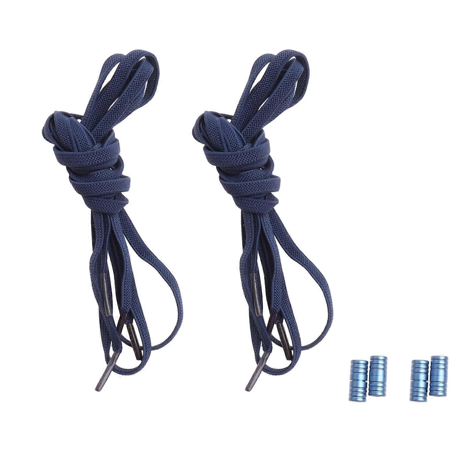 2 Pairs No Tie Elastic Shoe Laces, Shoe Laces Blue Elastic Shoelaces with Metal Capsule Quick Lock Buckle Shoelaces for Adult Elastic Laces for