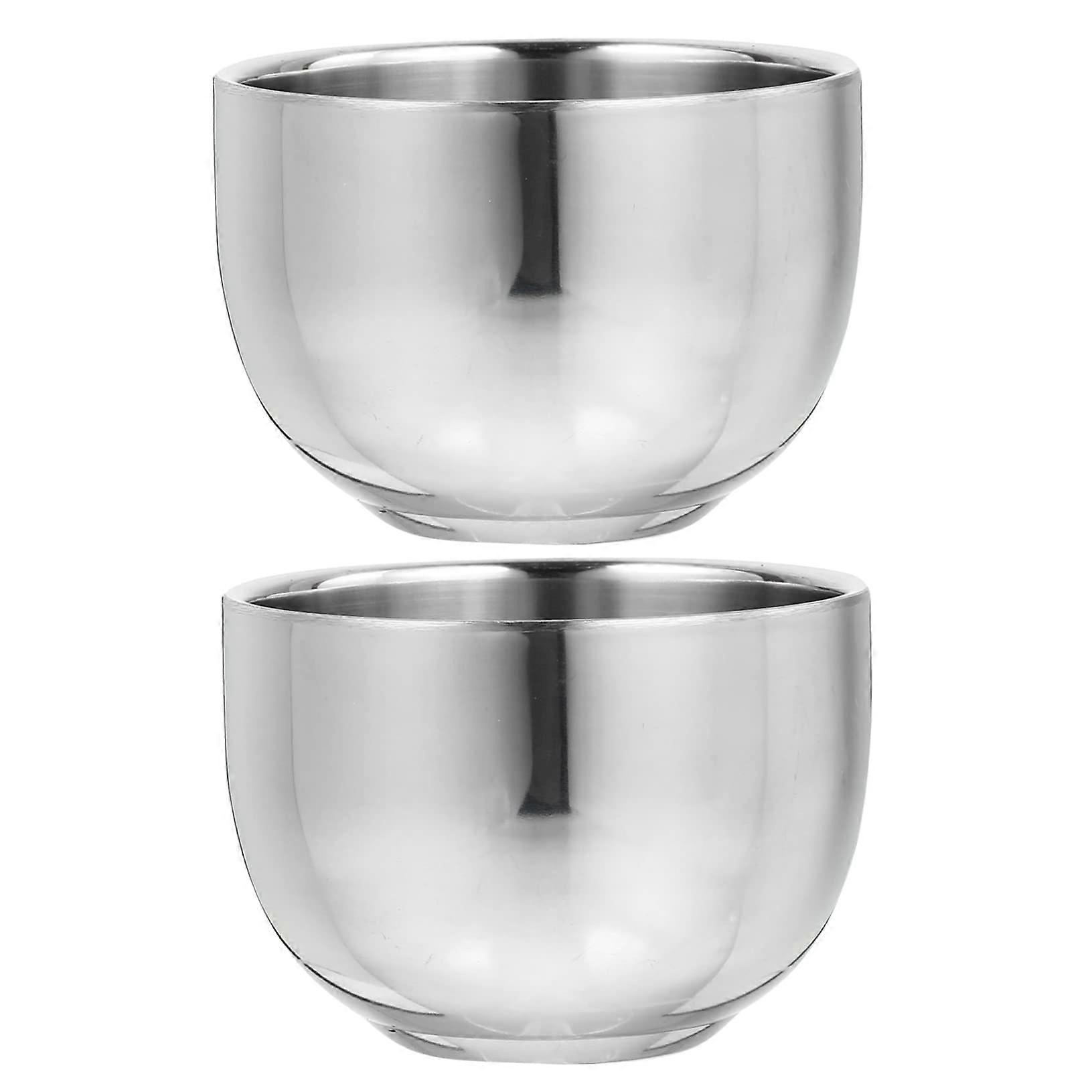 2 Pieces Simple Design Men's Shaving Bowls Durable Stainless Steel Bowls Silver