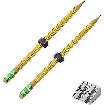 2Pcs ADHD Pencil, Threaded Pencil Fidget, Threaded Pencils for ADHD, Twist and Write Weighted Wooden Pencils Fidgets, Decompression Pen with Rotating