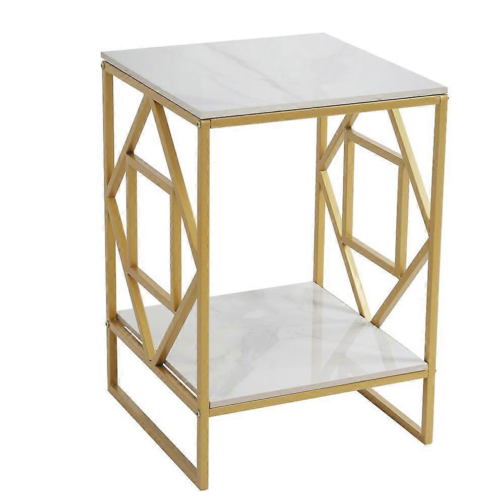 2 Tier Large White Marble Side Table Sofa Corner End Accent Table Living Room