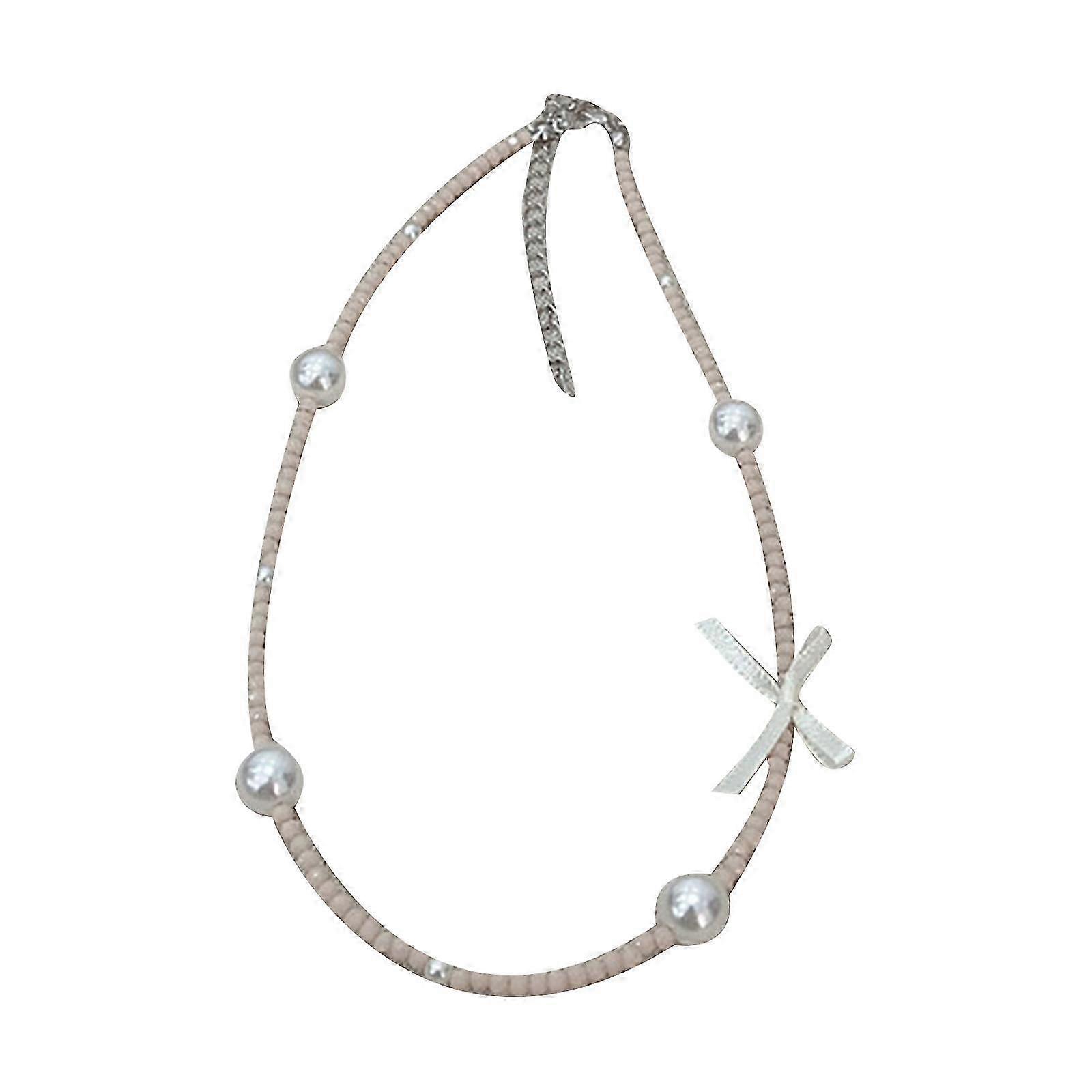 2025 Simple Bowknot Necklace Fashion Collar Necklace Sweet Cool Clavicle Chain Pearl Crystal Beaded Choker Statement Jewelry Solid color off whit