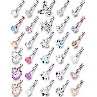 20G 18G Nose Rings Studs Surgical Steel Nose Stud Glow Dark Heart Opal CZ Flower