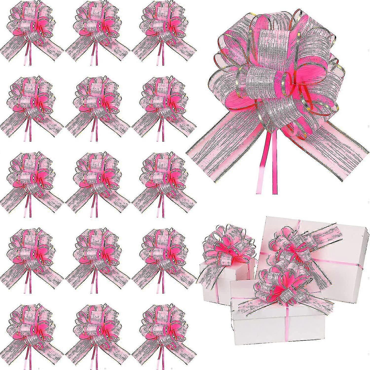 Abundant Quantity: The package contains 20 cute unassembled pink gift wrap bows, enough to decorate your gift or gift box and make them more delicate and beautiful Attractive design: these gift pulls The bow is designed with a striped pattern in attractive colors and the finished shape is like a yellow flower that looks sparkling and beautiful in the light Premium material and right size: This white Christmas gift bow is made of organza Manufactured, safe and sturdy, tear-resistant and fade-resistant, you can draw with confidence Easy to operate: each draw bow consists of 8 bows, which are firmly fixed by plastic rings; find 2 thin ribbons, one Hold 2 thin ribbons in one hand and slowly pull the other hand, a nice big bow will come out, you can also follow the steps in the picture/video to get a nice bow application Wide range: These pink gift bows can not only decorate gift box packaging, flower packaging, wedding table, Christmas gifts, but also can be applied to Christmas, weddings, baby showers, etc., to make your big day full of romantic and fresh atmosphere